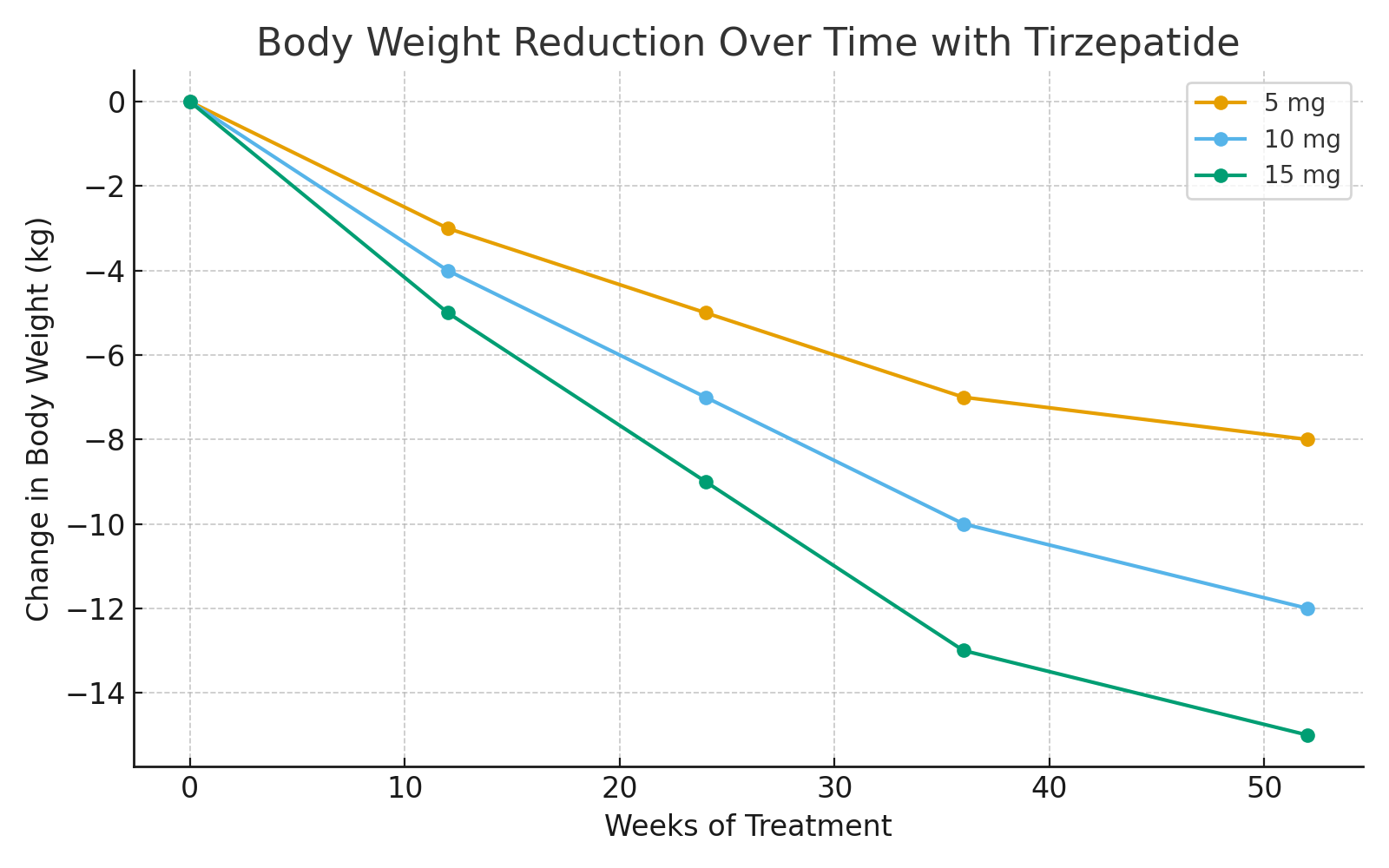ترزيپيٽائيڊ مسلسل پيدا ٿيوطبي لحاظ کان معنيٰ خيز ۽ خوراک تي منحصر وزن گھٽائڻذیابيطس ۽ غير ذیابيطس جي آبادي ٻنهي ۾.